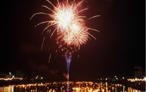 またまた富山市水橋の橋祭りの花火です。白岩川に無数の灯籠を流しての花火は壮大で美しいです。