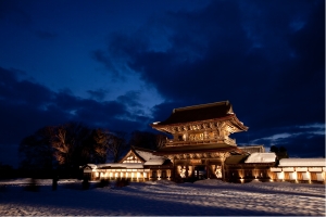 高岡の冬の夜を彩る国宝瑞龍寺のライトアップ。トイレの神様といわれる烏枢沙摩明王も祀られている。