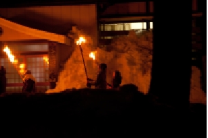 宇奈月温泉で毎年冬に行われる冬のカーニバル大勢の人々がたいまつをもって温泉街を練歩くのは圧巻です。